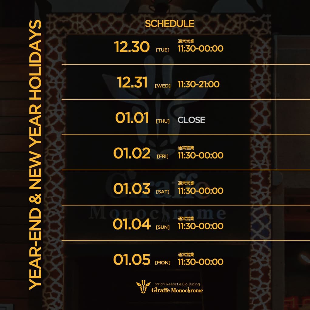【年末年始の営業時間】